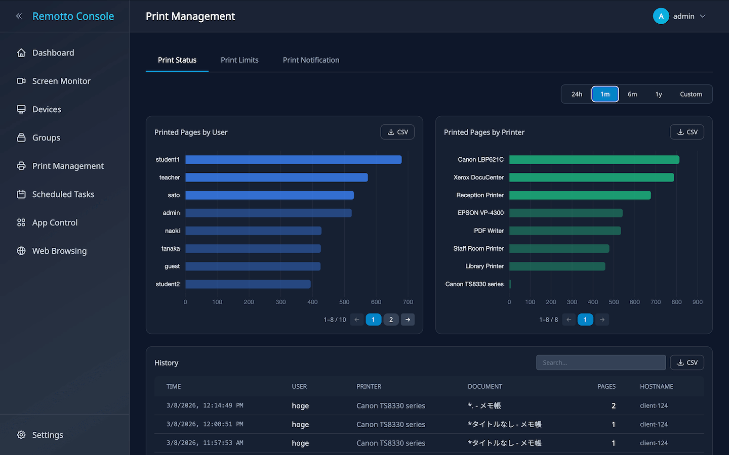 • Print Pages (24h): Total pages printed in the last 24 hours