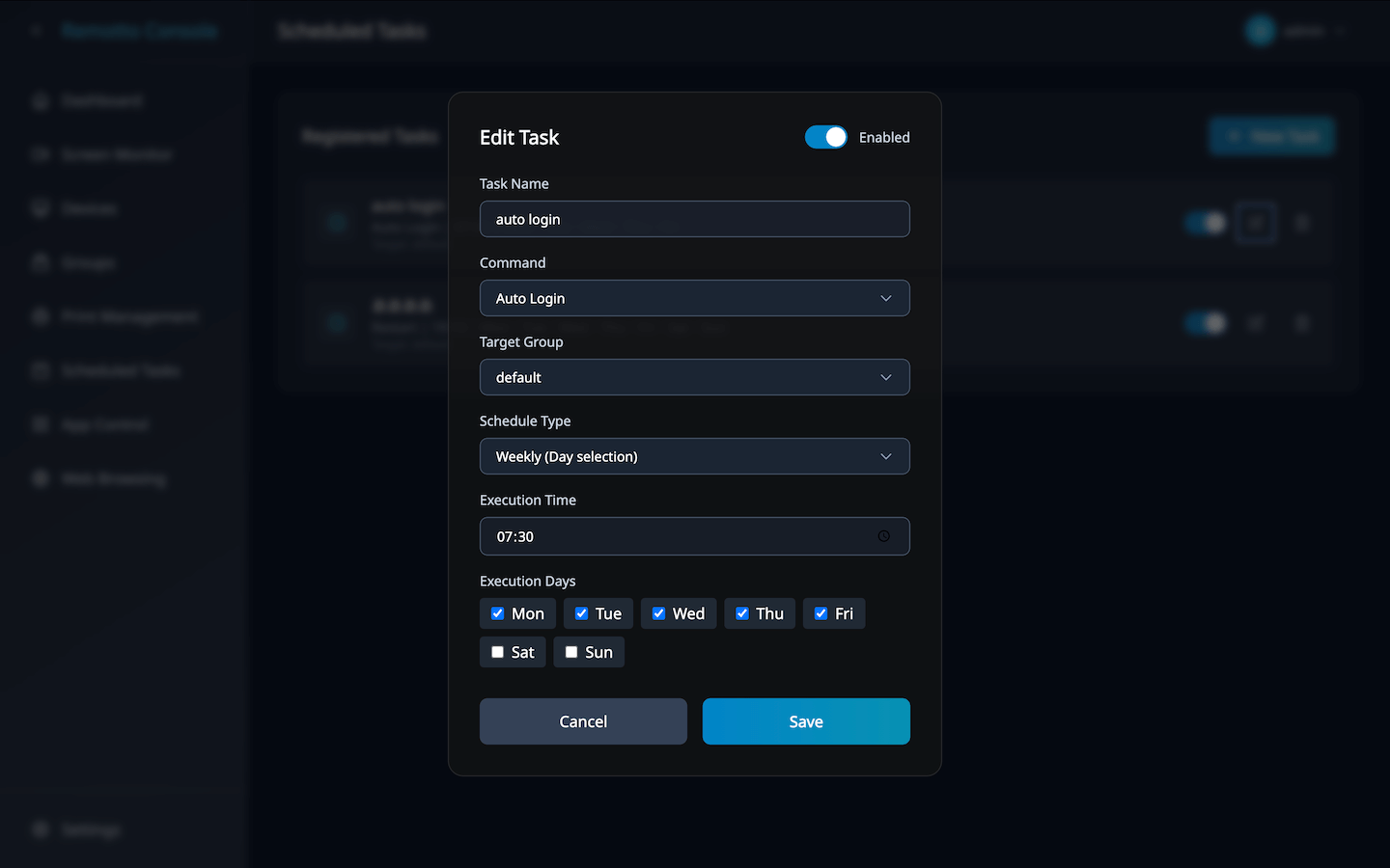 2. Select target device(s) with checkboxes (multi-select supported)